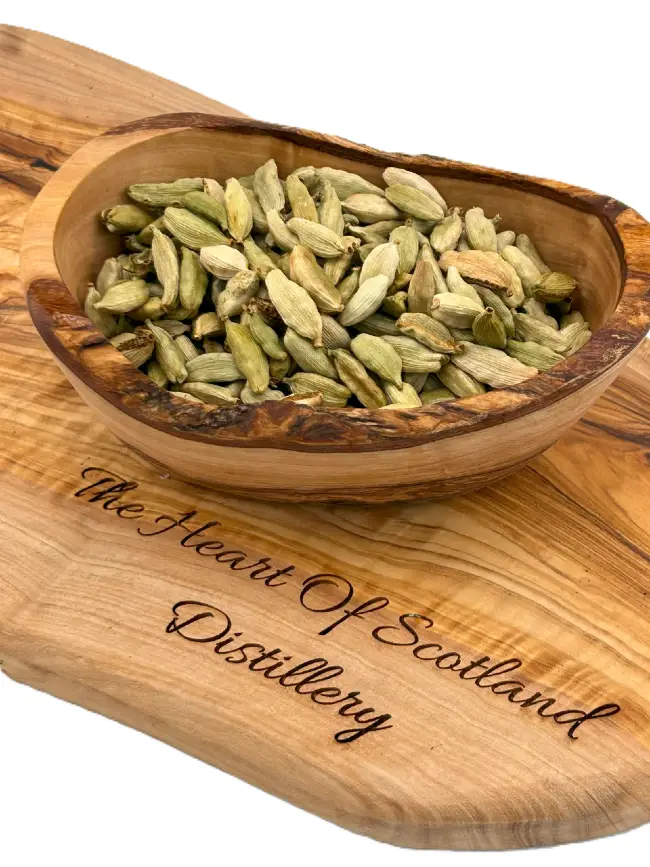 Our green cardamom pods are ethically sourced from trusted growers. They bring bright citrus and gentle eucalyptus notes that lift the nose and add a clean, aromatic line through the palate. Used sparingly to keep the balance with juniper.