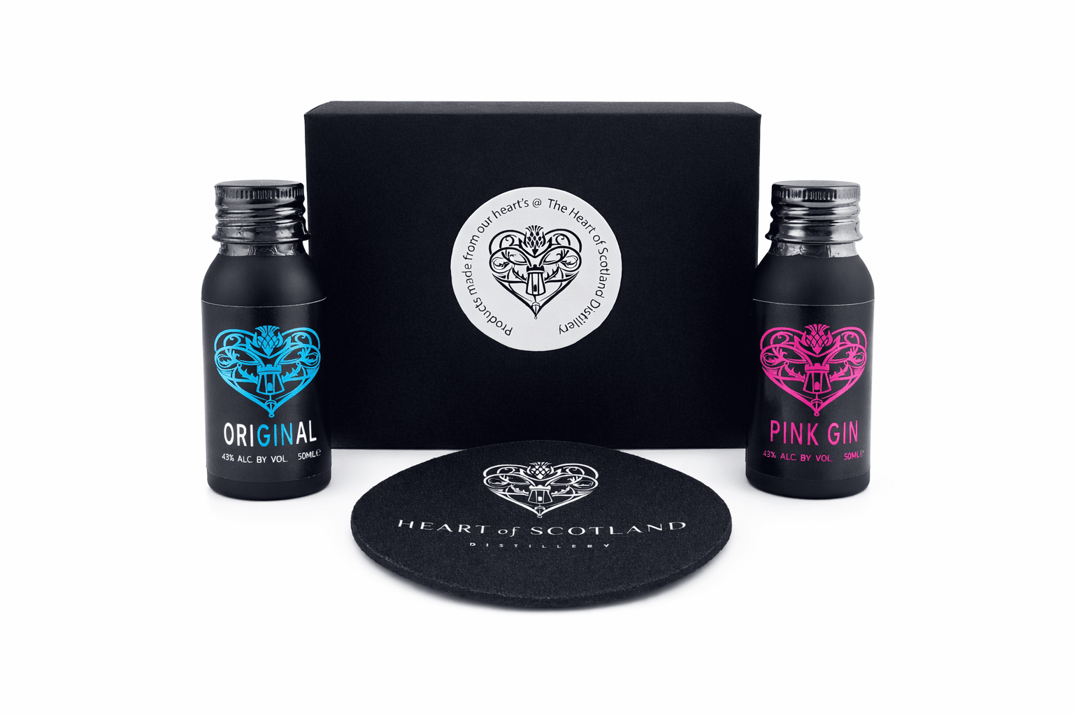 Includes: 2 × 50ml miniatures + 1 branded coaster + display gift box